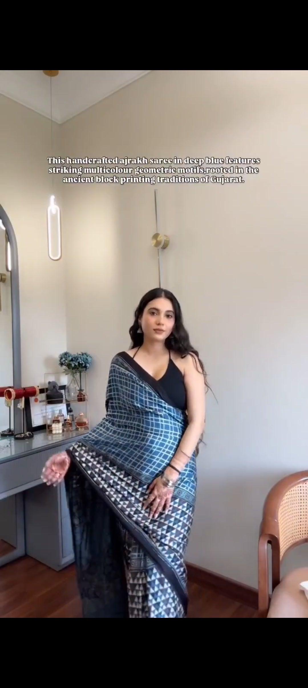 Step into timeless elegance with this stunning rust–blue Ajrakh-inspired saree, crafted with intricate traditional motifs...