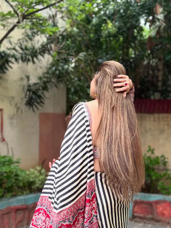 Ajrakh Modal Silk Semi Gajji Silk Saree