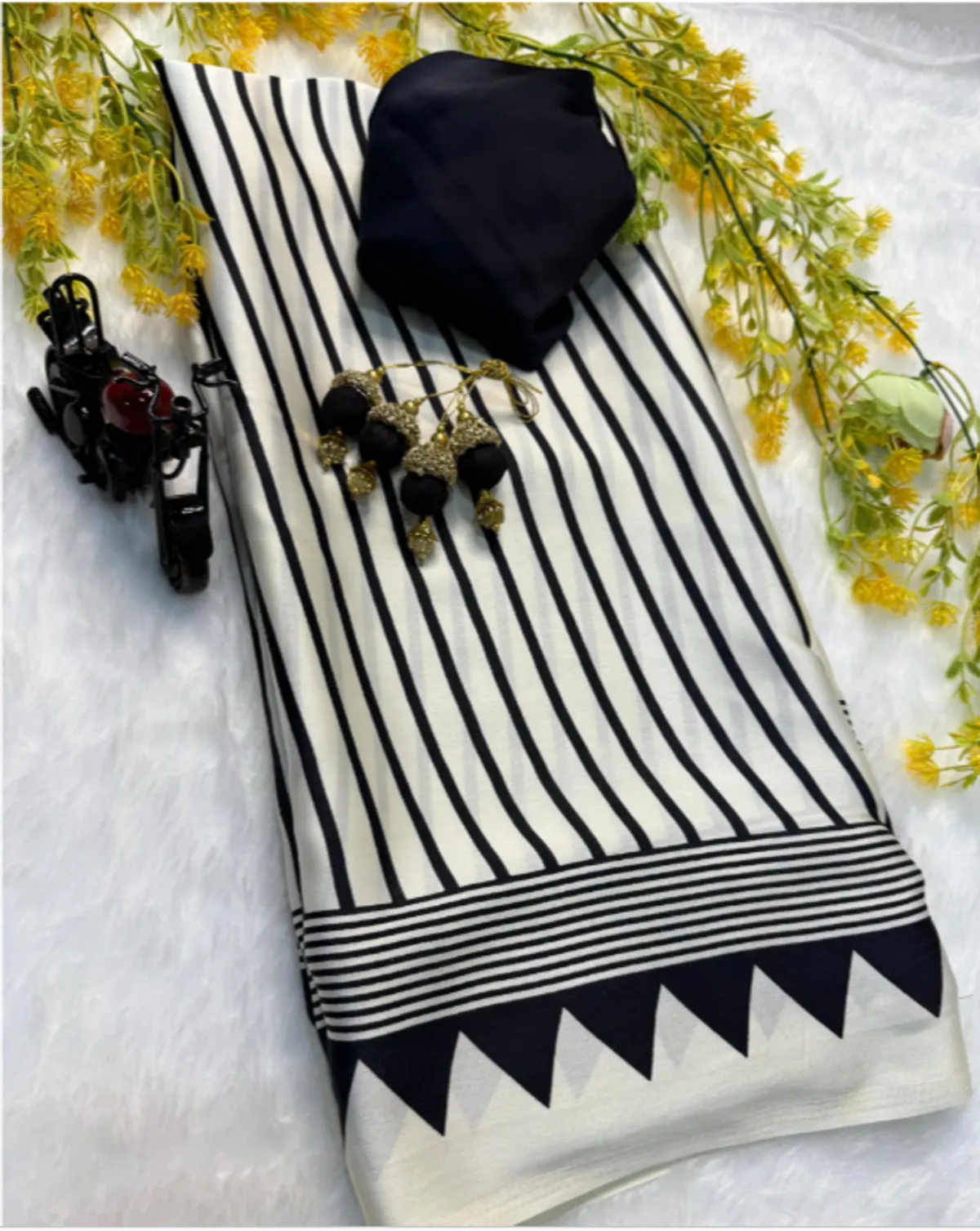 It comes with a well matched blouse piece that adds to the overall coordination and style of the ensemble. Easy to drape and effortless to carry this saree is ideal for women who appreciate a fine blend of traditional charm and modern elegance. Whether it is a festive celebration a family function or a special day out this saree offers a timeless appeal and refined grace for every occasion.