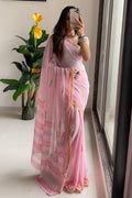 Blush Pink Soft Maslin Cotton Saree With Zari Border