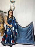 "Classic Ajrakh Printed Sarees with Contemporary Polka Dot Saree Design"
