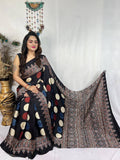 Saree work : Digital Print Border with Ajrakh Rich Pallu With Contrast Blouse