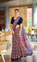 Crimson Charm Ajrakh Print Saree With Rich Pallu