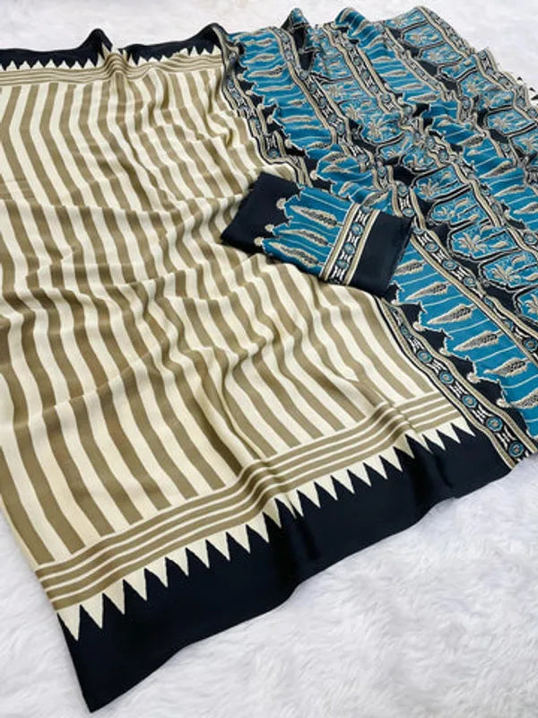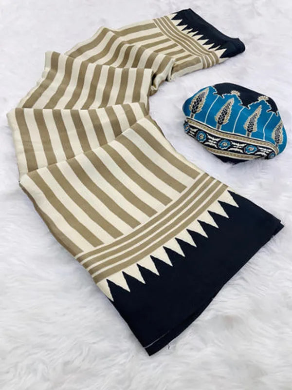 Elegant Black Ajrakh Printed Modal Silk Saree with Blouse Piece