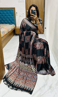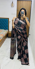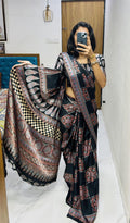 Elegant Black Printed Ready-to-Wear Gaji Soft Silk Saree