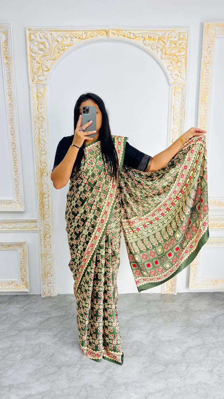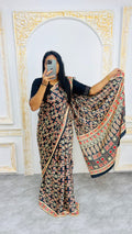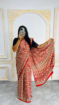 *Ajrakh Print Border with Ajrakh Rich Pallu With Contrast Blouse*