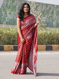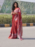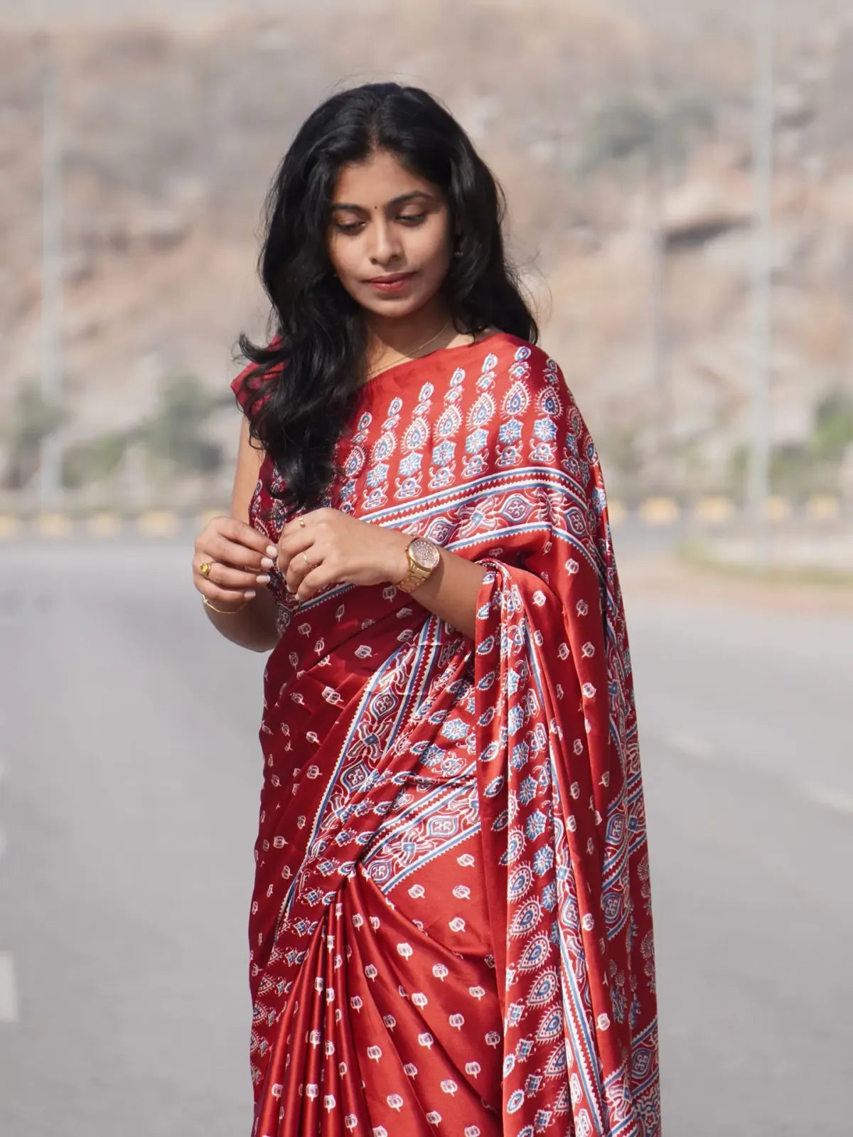 Graceful Red Ajrakh Print Silk Saree with Traditional Motifs