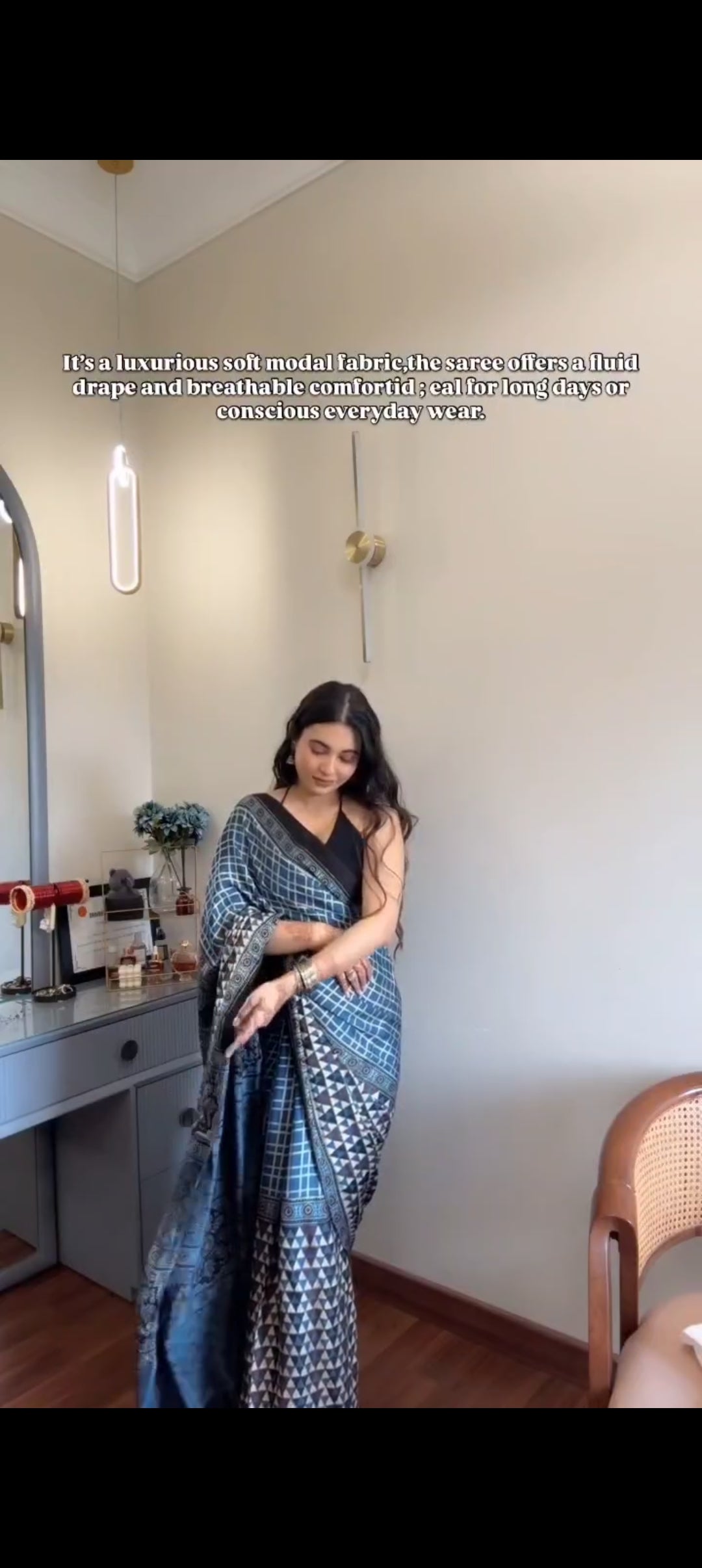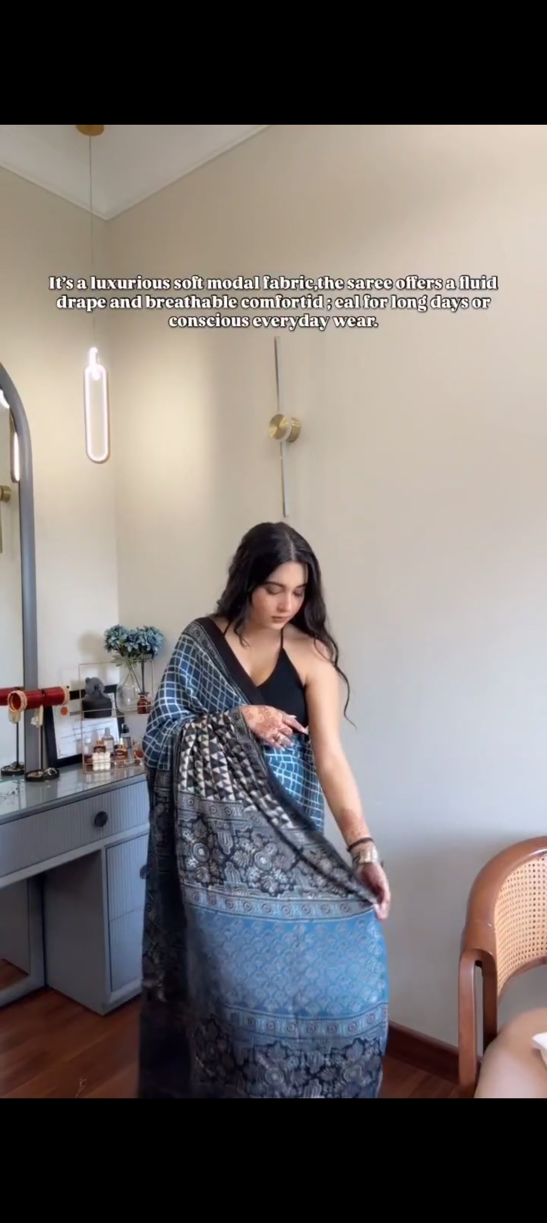 Step into timeless elegance with this exquisite Ajrakh Modal Silk Saree, handcrafted with traditional block printing techniques that celebrate rich Indian artistry. The luxurious modal fabric drapes beautifully, offering a soft, fluid fall that enhances your natural grace.