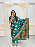*Ajrakh Print Border with Ajrakh Rich Pallu With Contrast Blouse*