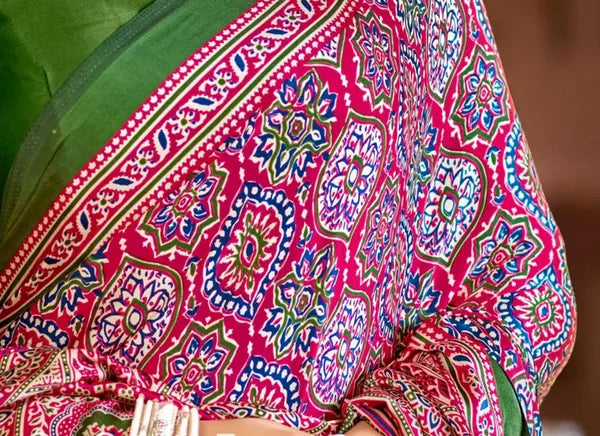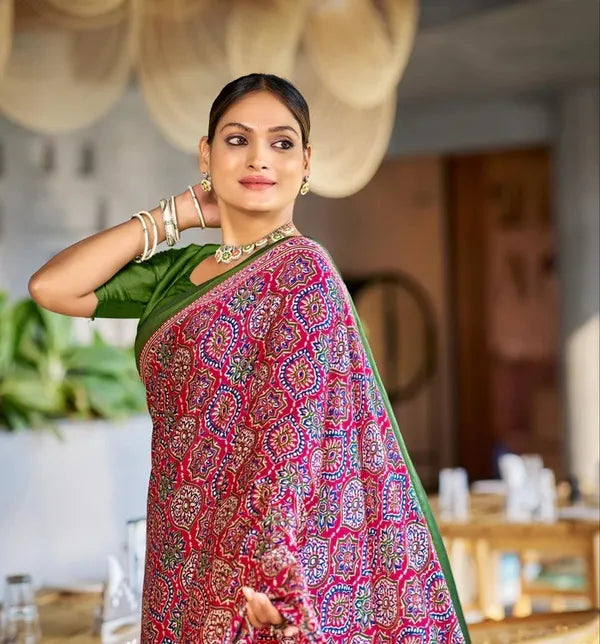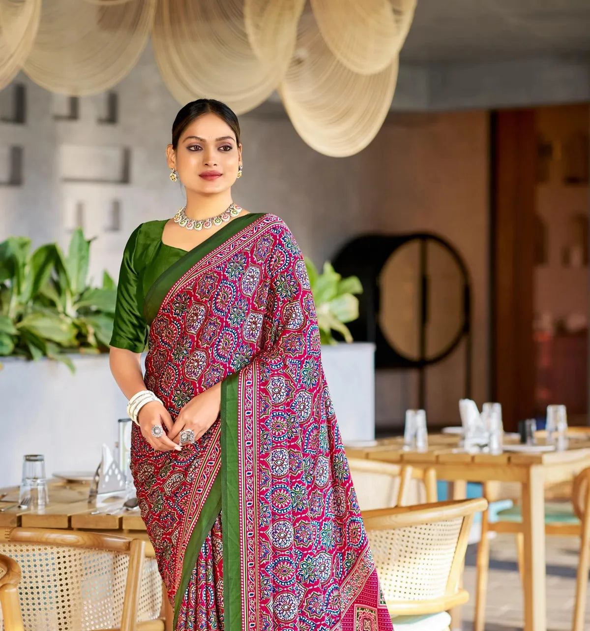 Rani Ajrakh Printed Modal Silk Saree with Blouse Piece – Soft & Elegant Look