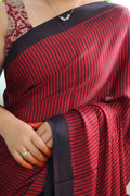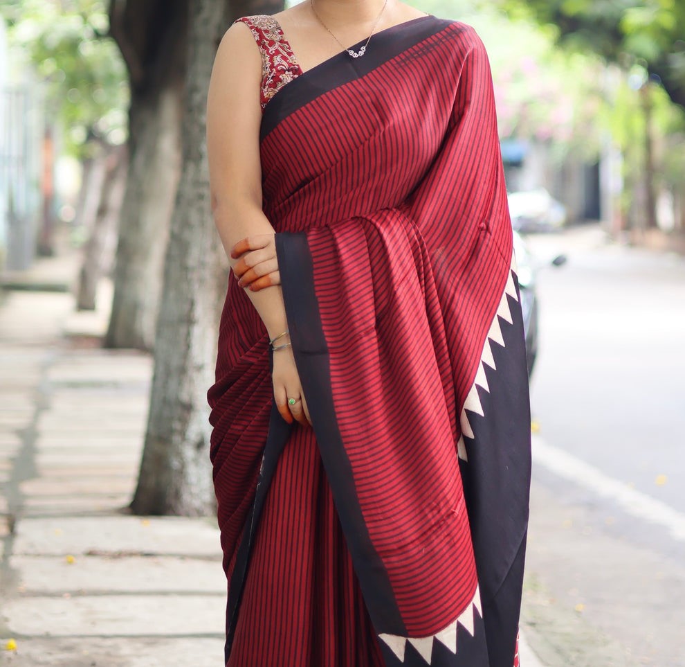 Ajrakh Digital Print Border with Ajrakh Rich Pallu With Contrast Blouse