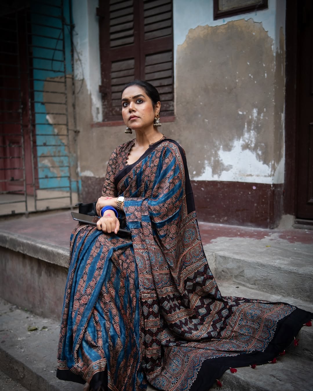 Rustic Charm Ajrakh Inspired Saree With Blouse
